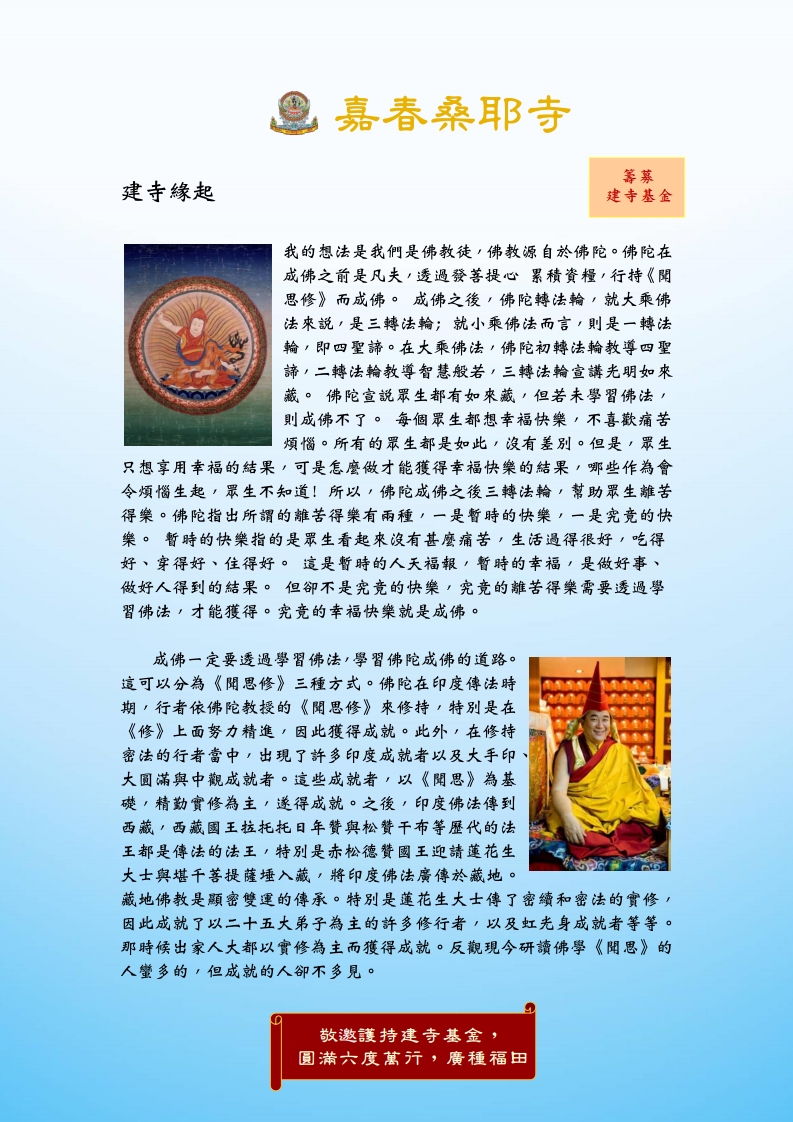 嘉春桑耶寺之建寺緣起 歡迎護持寺院籌建